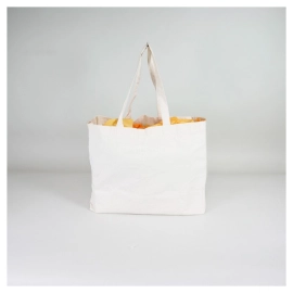 Entdecken Sie die wiederverwendbare Baumwolltasche 220 g/m² (8 oz), eine ideale Verpackungslösung für umweltbewusste und ästhetisch orientierte Unternehmen. Diese Tasche, aus robustem Baumwollstoff gefertigt, ist so konzipiert, dass sie praktisch, trendy und zeitlos ist. Mit ihren langen Griffen, die innen angenäht sind, kann sie bequem über der Schulter getragen werden und bietet großen Komfort für den täglichen Gebrauch. Im Gegensatz zu traditionellen "Tote Bags" verfügt diese Tasche über Seitenfalten und einen Boden, wodurch ihre Speicherkapazität und Funktionalität erhöht werden.