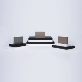The HINGBOX is perfect for a wide variety of items such as photos, books, documents, prints, clothing, and much more. This pre-assembled box is primarily intended for thin items. With its reduced height, this box is perfect for photos and books, offering an elegant and professional presentation.