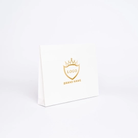 Featuring a bottom gusset, this pouch can stand upright without additional support, and has two side gussets. Available in 6 sizes, 2 colors, and 2 printing techniques, it provides great creative freedom for a luxury customized paper pouch.