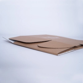 Nuestra caja de envío de cartón corrugado de 700 g/m² es perfecta para envíos web. 100% reciclable y biodegradable, está cubierta con papel kraft blanco por un lado y papel kraft marrón por el otro, permitiéndole elegir el color exterior que mejor se adapte a su marca. El montaje es rápido y sin pegamento, y se entrega plana para su conveniencia.