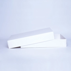Construite en carton contrecollé de 420 g/m² de première qualité, la boîte Campana combine solidité et légèreté. Avec ses dimensions internes de 40x31x8 cm (tolérance de +/-0,5 cm), elle satisfait les exigences des professionnels et des particuliers à la recherche d'emballages généreux et robustes. Son système d'assemblage en deux parties, base et couvercle, permet un montage rapide et sans besoin de colle, réalisable en moins d’une minute.