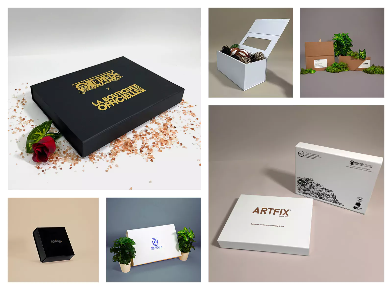 - Boîtes aimantées (Wonderbox) : nos célèbres Wonderboxes sont des boîtes rigides à fermeture magnétique, au rendu luxueux. Déclinées en plusieurs modèles, tailles et finitions, elles sont idéales pour les cadeaux d’entreprise, la cosmétique ou les produits gastronomiques.